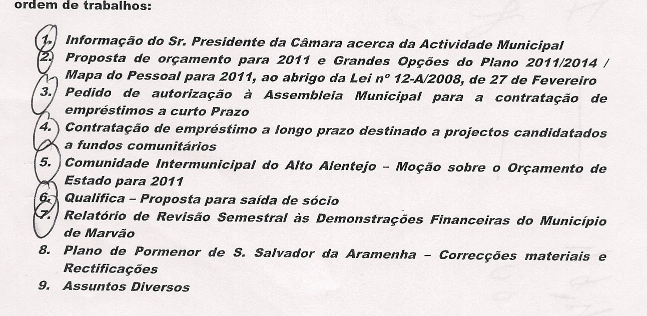 Em minha opinião, esta deveria ser a AM mais importante do ano, pois em causa, estavam assuntos que irão influenciar toda a vida do concelho no próximo ano e seguintes. Lembremos aqui a Ordem de Trabalhos: